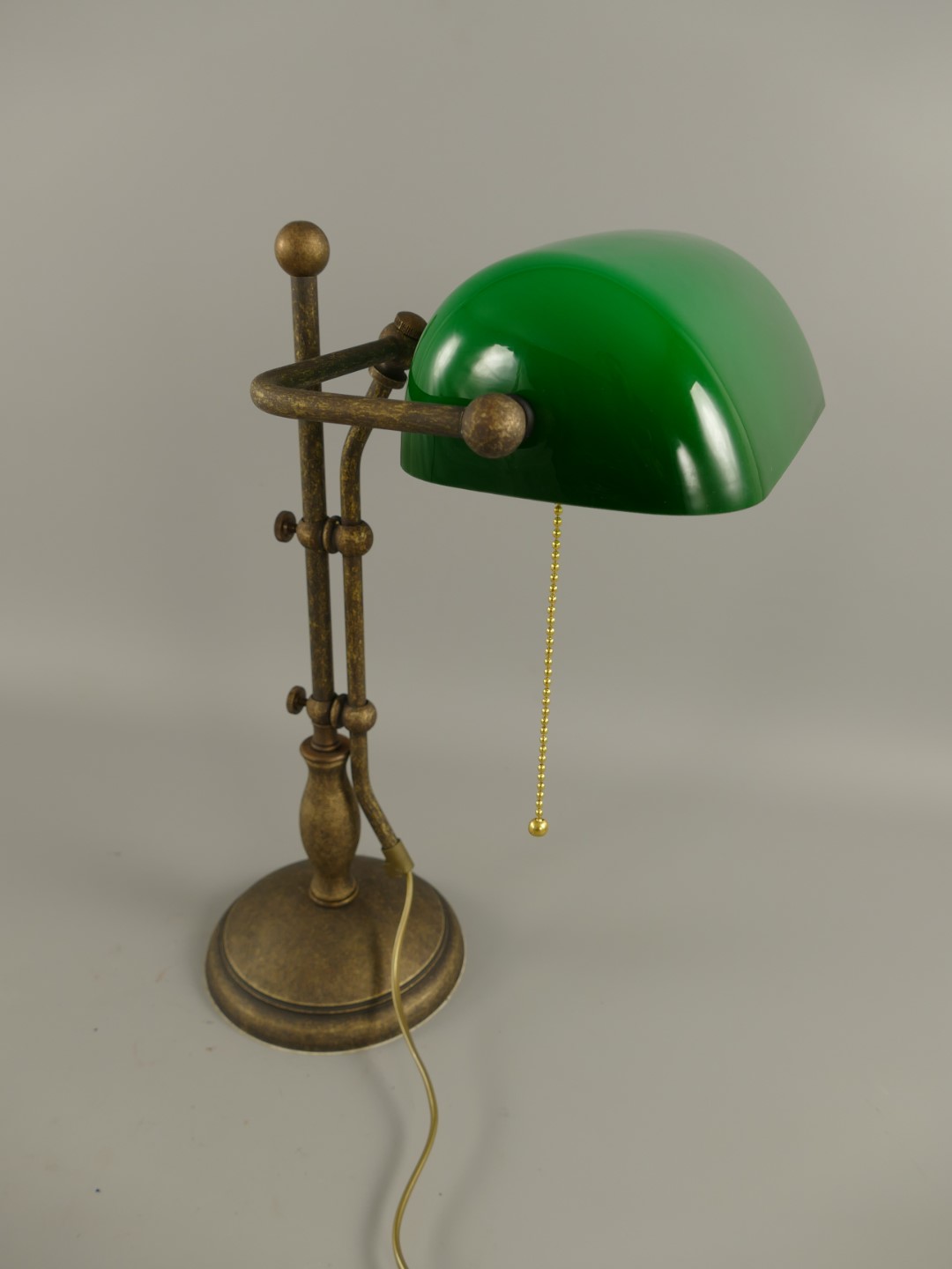 Edle Tischlampe als Bankierlampe für Ihren Schreibtisch aus Messing brüniert mit grünem Glasschirm 230V, E27 max. 60 W (ohne Leuchtmittel)