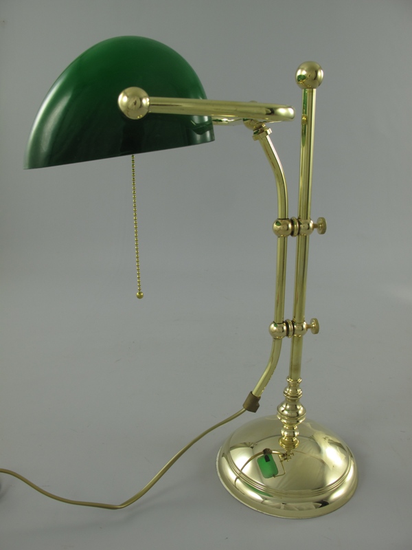 Edle Tischlampe als Bankierlampe für Ihren Schreibtisch aus Messing mit grünem Glasschirm 230V, E27 max. 60 W (ohne Leuchtmittel)
