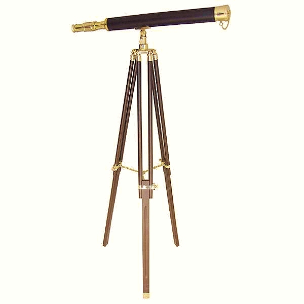 Großes Teleskop aus Messing mit Lederummantelung, das Stativ aus Holz, Länge: ca. 100 cm, Höhe: ca.160 cm