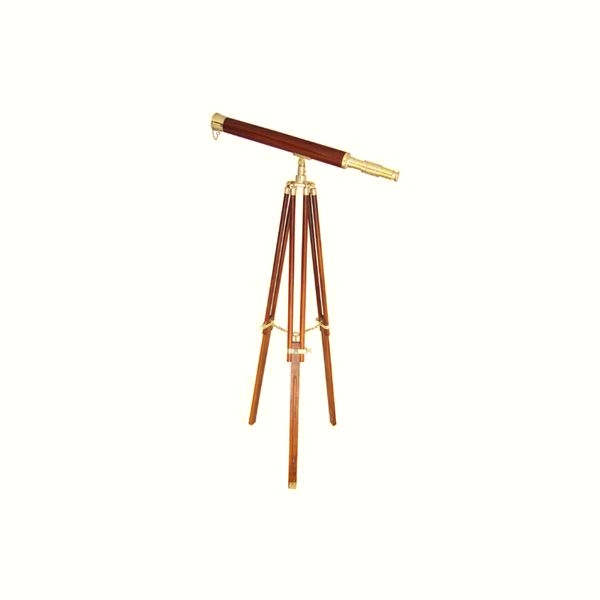 Dekoratives Teleskop aus Messing mit Holzummantelung,, das Stativ aus Holz, Länge: ca. 69 cm, Höhe: ca.130 cm