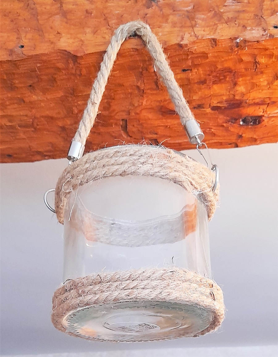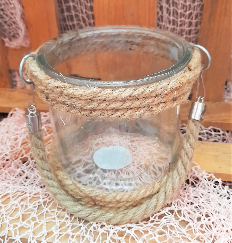 Dekoratives Windlicht mit Jutekordel zum Bestücken mit einem Teelicht oder Kerze (nicht im Lieferumfang enthalten)